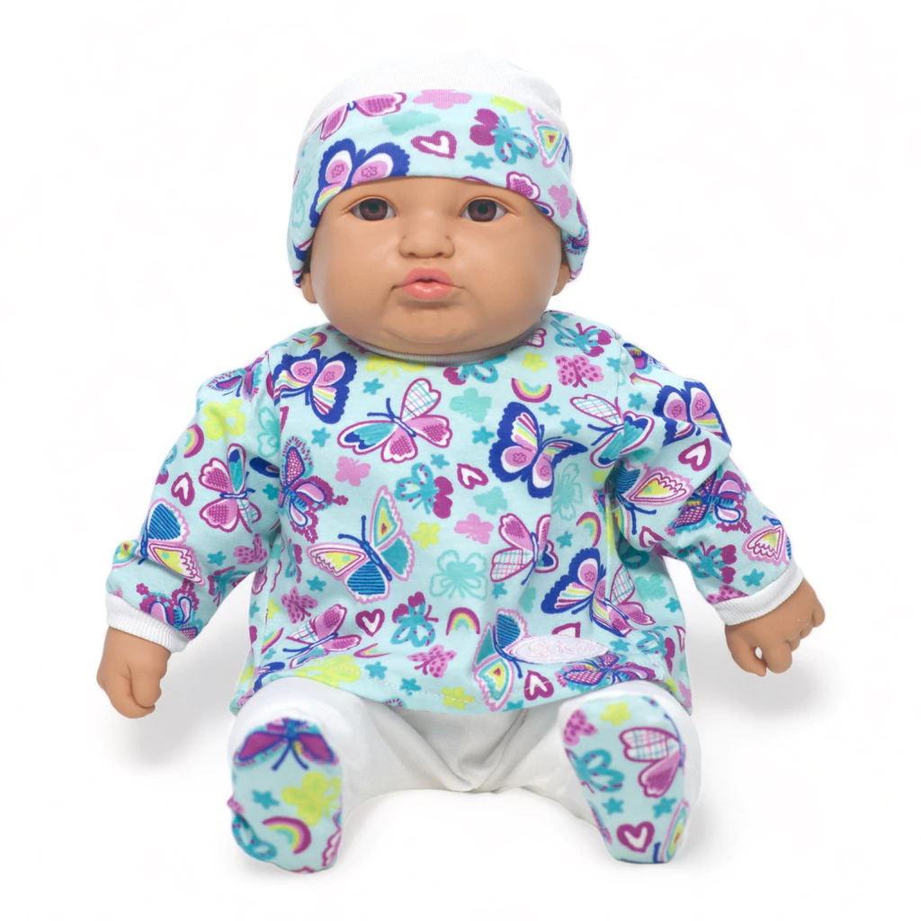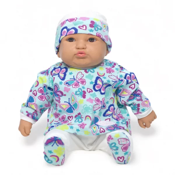 Este encantador bebote LeBebot luce un colorido conjunto estampado, acompañado de un gorrito a juego Su diseño transmite dulzura y realismo, ideal para acompañar los juegos y momentos de ternura de los más pequeños