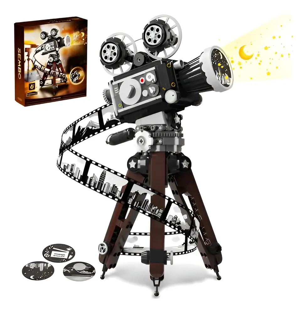 Inspirado en las antiguas cámaras de filmación, este modelo es ideal para fanáticos del cine, coleccionistas y amantes del armado con bloques. Cada pieza encaja a la perfección para recrear un diseño detallado y elegante, que podés usar como decoración o exhibir en tu colección.