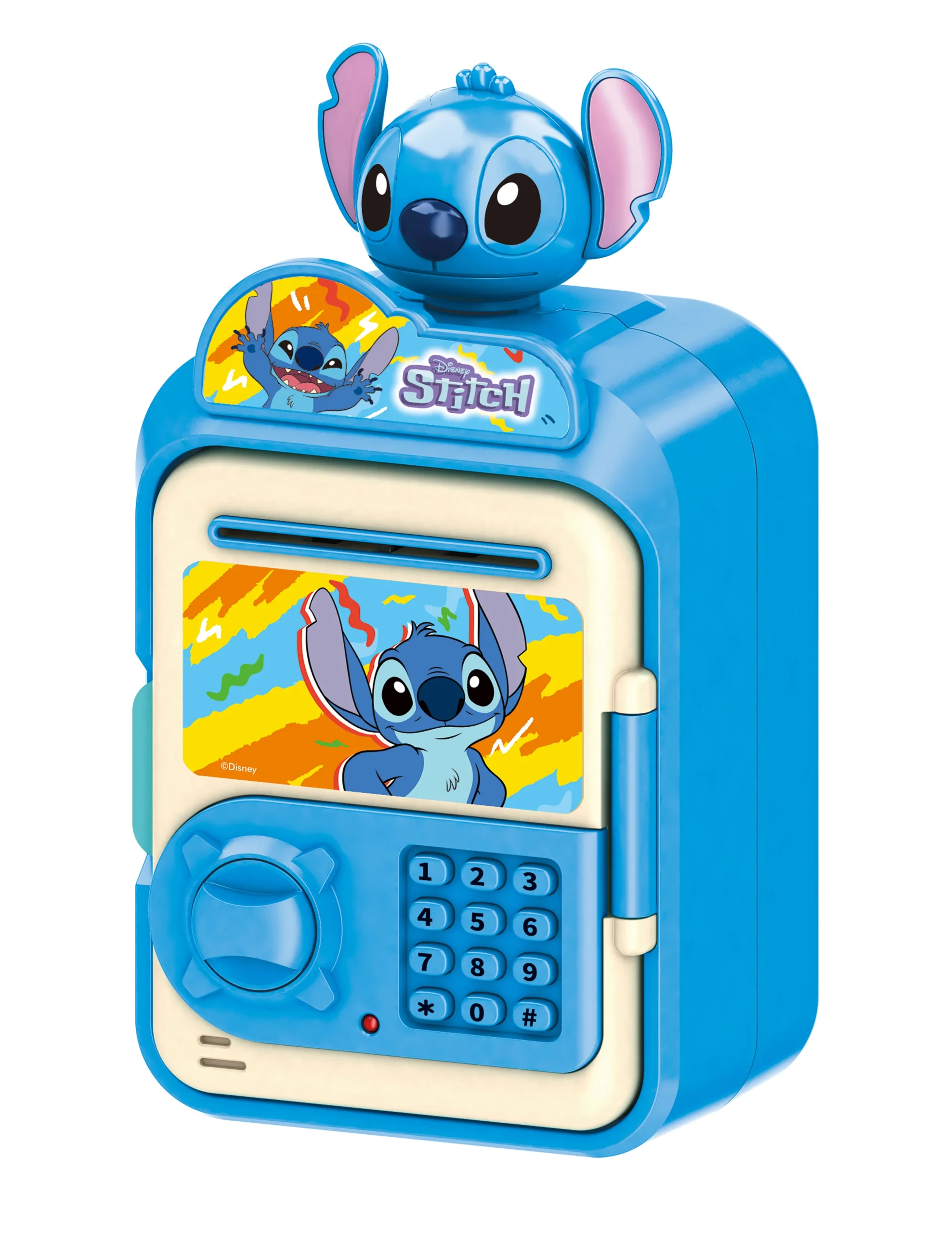 Guardá tus ahorros y tesoros favoritos con la adorable Caja Fuerte Electrónica de Stitch, el personaje más divertido y travieso. Ideal para niños que quieren empezar a ahorrar de forma entretenida.