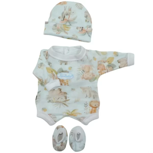 El conjunto es una opción encantadora para que tu bebote LeBebot luzca elegante y adorable. Este conjunto incluye body manga larga, escarpines y gorro, perfecto para cualquier ocasión especial.