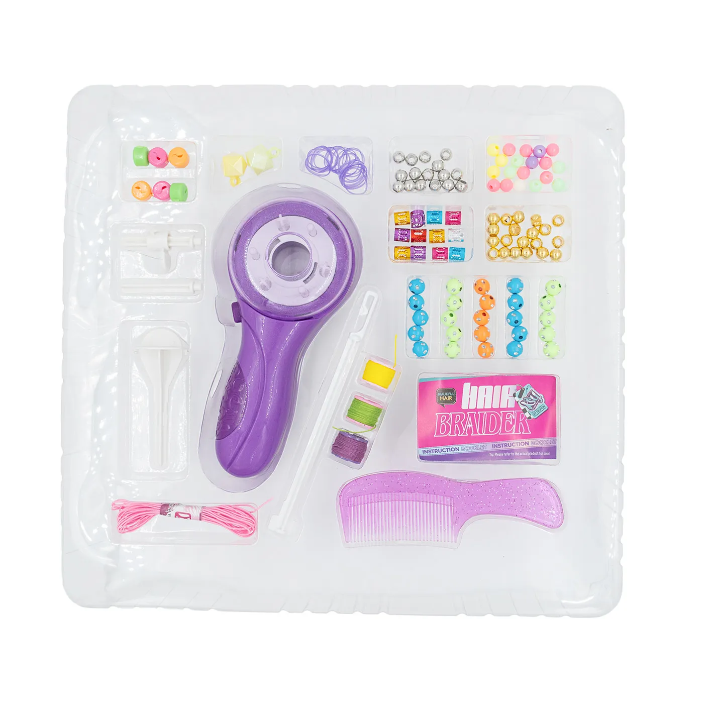 ¡¡La forma más divertida de crear peinados únicos y llenos de estilo! La Máquina para Hacer Trenzas Tiny viene acompañada de un completo set de bijouterie para decorar cada trenza con cuentas, hilos y accesorios súper coloridos. Ideal para niñas que aman la moda, la creatividad y los peinados originales.
